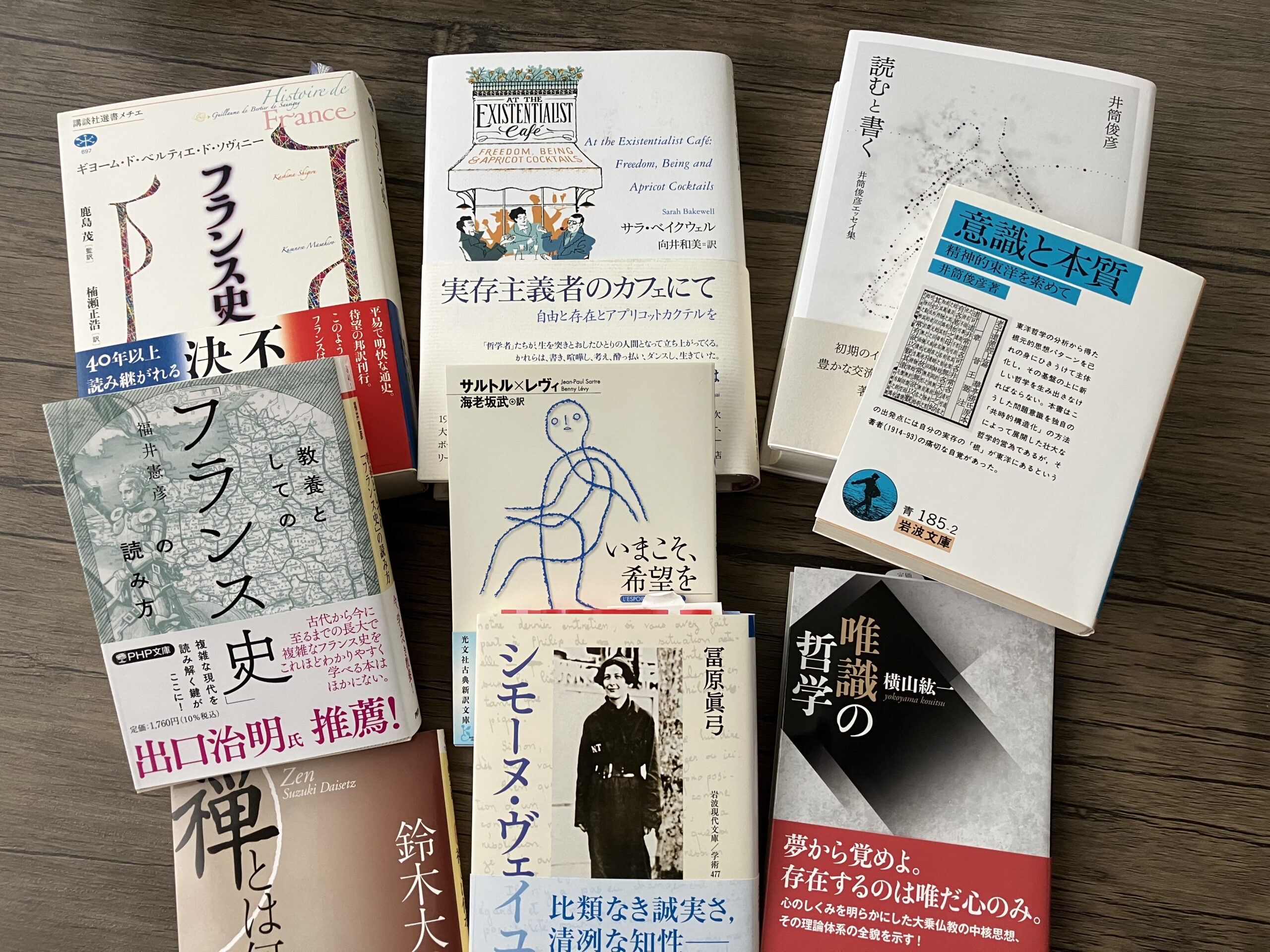 91歳の先輩が「実存主義者のカフェにて」という本を紹介してくれた。哲学かぁ・・・おそらく難しくて理解できないだろうし、それを知って何になるのかとさえ思った。おまけにその本は4,180円もする。しかし数か月後、何だかとても気になり買ってしまった(図書館になく、ブックオフ、メルカリ価格に「お得感」なし)。家に届くとすぐに本を開き、一気に読んでしまった。哲学に興味を持ちながらもどこから入っていいのかわからないという人に最適な入門書だと思った。その後、「はじめての哲学史」という本で哲学の流れを掴んでおこう思ったが、逆にこういった通史の方がよくわからない部分が多く、面白味にも欠ける。一つの思想に費やせる紙面が少なく、説明は最小に限定されるため、やむを得ないのだと思う。