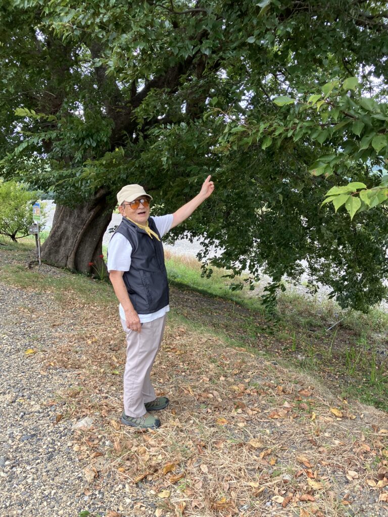 「これがムクノキだよ」散歩の目的は木の実を食べること。