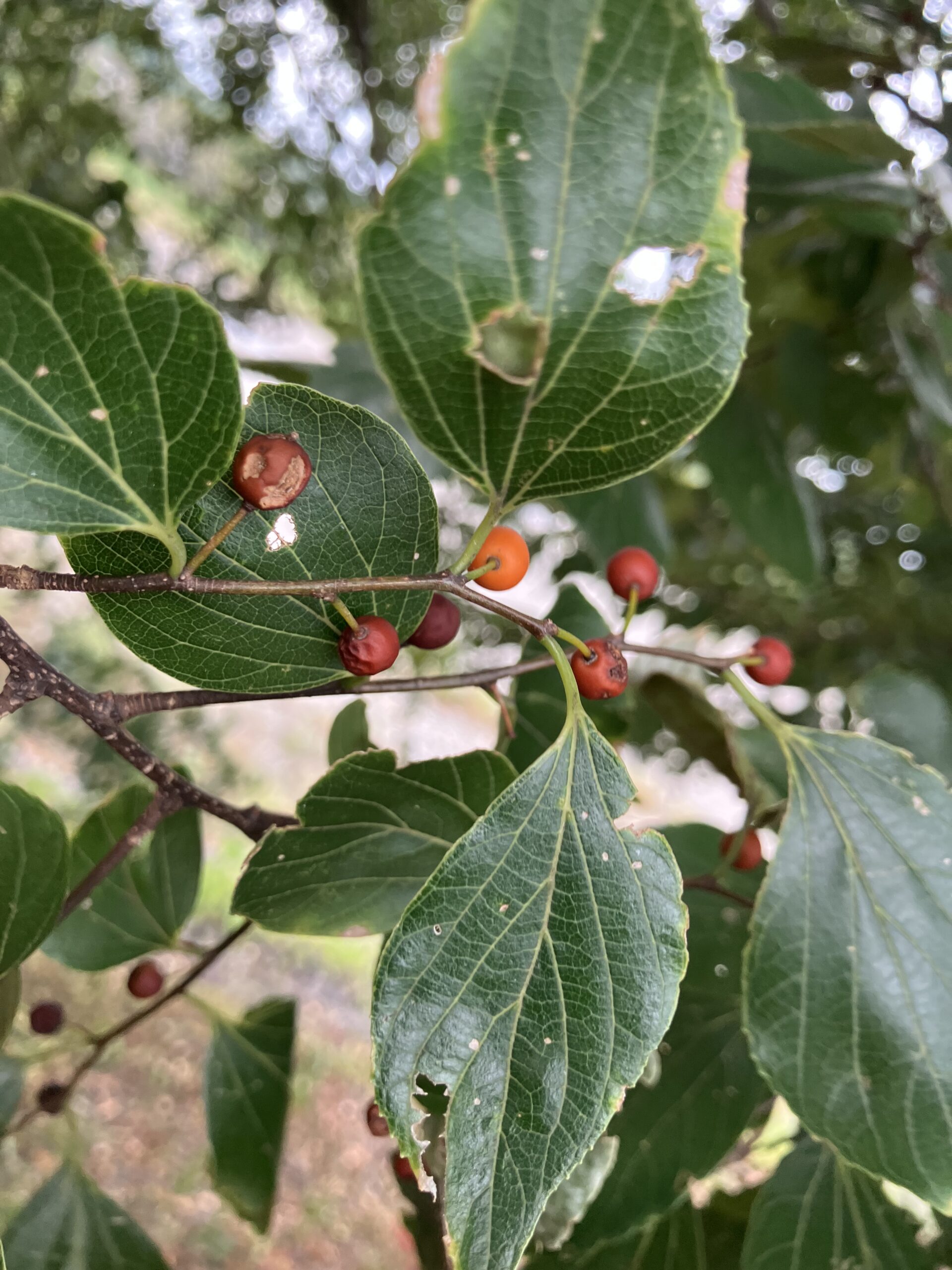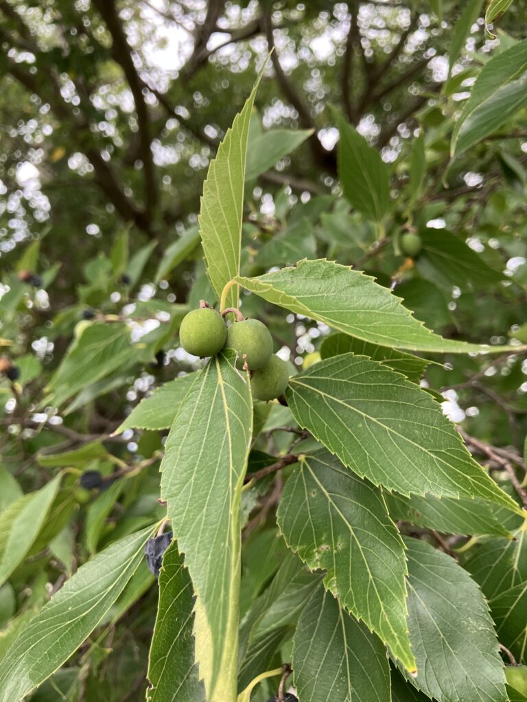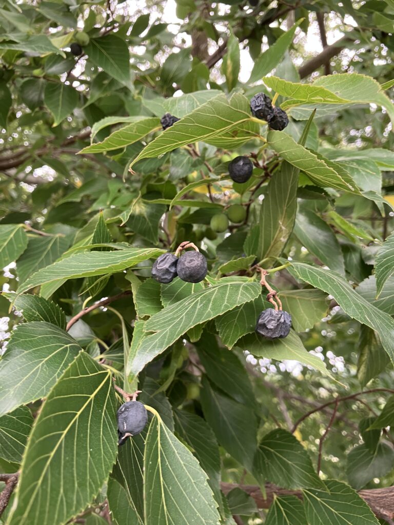 次は隣のエノキの実。スマホカメラには全景が入りきらない。